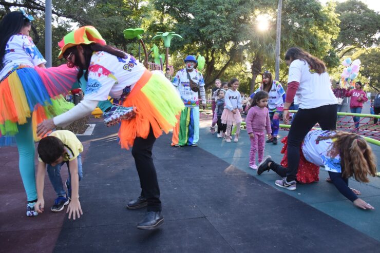 El coordinador de la Fundación Payasonrisas, Cesar Torres, sostuvo que “es muy gratificante contar con el respaldo de la gestión municipal de Resistencia para compartir con los niños y niñas para jugar y divertirse en la renovada Plaza 25 de Mayo”.