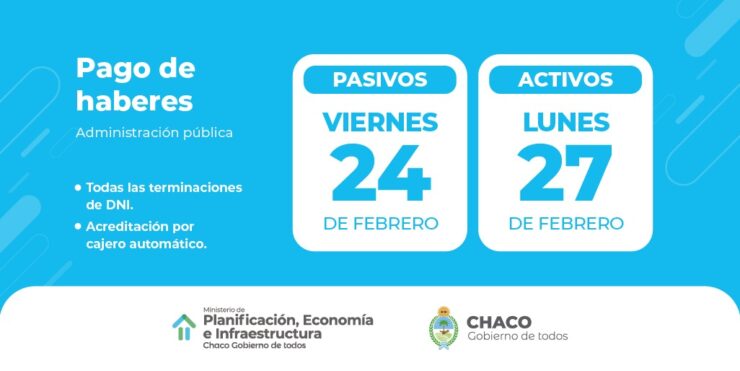 Este viernes 24 de febrero comienza el cronograma de pago de haberes. Como es habitual en esta gestión, los sueldos se depositan antes de fin de mes.