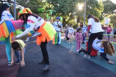 Actualidad En la renovada Plaza 25 de Mayo, los “Payasonrisas” proponen una tarde de juegos para niños y niñas