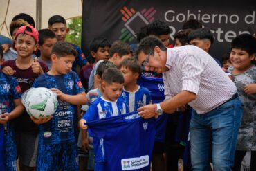 Política y Economía En el barrio San Fernando, Gustavo entregó indumentaria deportiva para más de 150 chicos que asisten a la Fundación Atlas del Sur