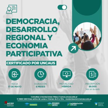 Actualidad Inscripciones abiertas para la Diplomatura en Democracia, Desarrollo Regional y Economía Participativa de la UNCAUS