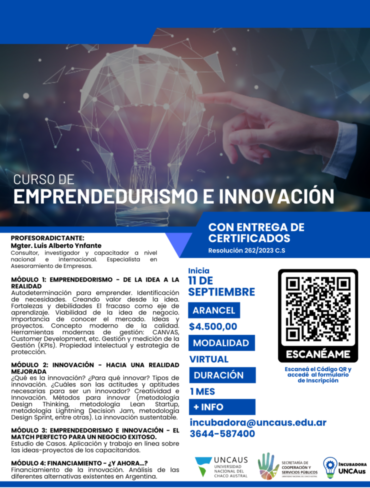 UNCAUS abrió inscripciones para el Curso de emprendedurismo e innovación